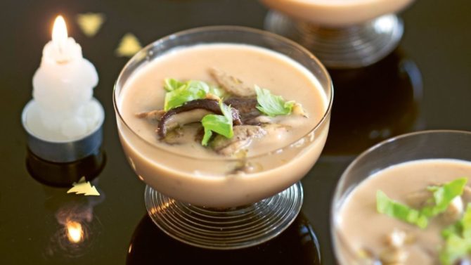 Of her festive chestnut velouté, Perla says: “With three contrasting yet complementary flavours and textures, this velouté is both elegant and luxurious. Quick and easy to prepare, it makes an ideal starter for a Christmas dinner. Happy Holidays!”