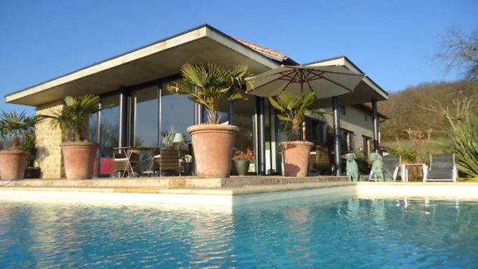 Location, location, location. This cliché sums up what is probably the most important asset of any property. My chosen property is set on a ridge in a secluded environment yet within easy reach of the three busy market towns of Marciac, Maubourguet and Plaisance. Its elevated position takes full advantage of the stunning panorama of the Pyrénées stretching across the horizon, and also takes in a small vineyard and numerous church steeples. Originally a farmhouse, the property has been renovated paying great attention to detail. Contemporary living spaces have been created and a continuity of style runs throughout, giving real integrity to the finished project.