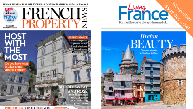 Beautiful homes, bargain properties and bar businesses: the November 2021 issue of French Property News (plus Living France), out now!