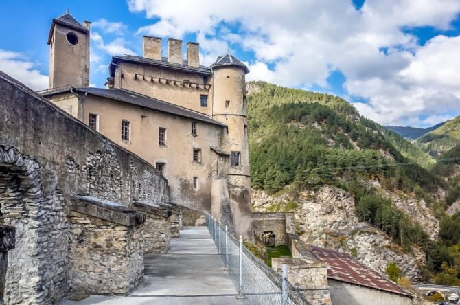 Atop a rocky perch above the River Guil, the château-fort sits within the stunning Queyras National Park in the southern Alps. Offering wonderful views of the surrounding mountains and forests, as well as the quaint riverside village of Ville Vieille, it comprises a collection of buildings within the ramparts, which are accessed via the main draw-bridge entrance. There are also soldiers’ barracks, store houses, arms depots, a bakery, hospital and even a chapel.