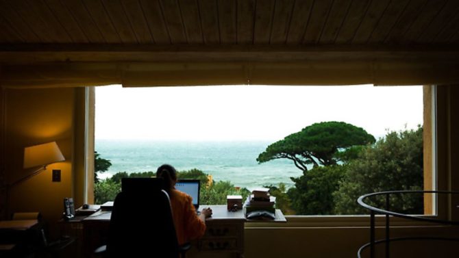 In addition to raising the height of the dining room ceiling and increasing the size of the kitchen, an extra wing was added to the property to create a new main bedroom and a study for Hannah. The latter has a spectacular view of the sea, and is where she spends many an hour writing.