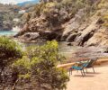 I arrive at ‘La Villa Rayolet’ with its deserted palisades, which dominates the lower hillside to the East, and feel a true sense of tranquility. Other visitors linger at their lunch tables and the peace and quiet is a blessing. Inspired by my lone sense of discovery, I clamber down a narrow beach path towards the very tip of the gardens at ‘La Pointe du Figuier’ and arrive in a tiny, sandy oasis facing the rocks and sea. Surrounded by fig trees, I lean on a giant log and listen to the sound of the sea lapping at the shore and peer out at distant sail boats, like white clouds kissing the blue.